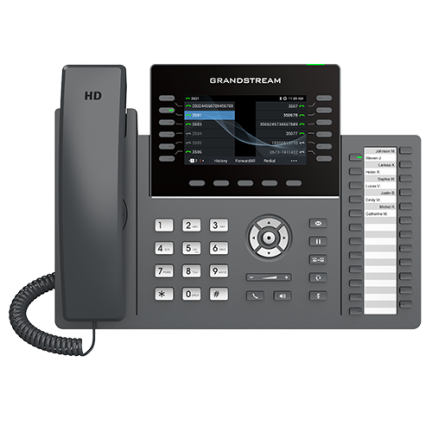 GRP Taşıyıcı Sınıfı IP Telefon serisinin bir parçası olan GRP2624, toplu dağıtım ve kolay yönetim için sıfır temasla provizyonla tasarlanmış profesyonel 8 hatlı bir modeldir. Şık bir tasarıma ve aşağıdakiler gibi yeni nesil özelliklere sahiptir: Üretkenliği en üst düzeye çıkarmak için 5 yönlü sesli konferans, entegre Wi-Fi, Bluetooth desteği, en üst düzeyde netlik sağlamak için hem hoparlörde hem de ahizede tam HD ses kalitesi ile VT ve Plantronics kulaklıklar için EHS desteği ve Grandstream’in GUV Serisi kulaklıklarını desteklemek için USB bağlantısı sunar.