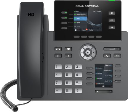 GRP2615, şık bir tasarıma ve entegre Wi-Fi, Bluetooth desteği, 40 çok amaçlı anahtar (MPK), kullanılabilir bir genişletme modülü (GBX20), çift Gigabit bağlantı noktaları ve daha fazlasını içeren bir dizi yeni nesil özelliğe sahip, üst düzey taşıyıcı sınıfı bir IP telefondur.